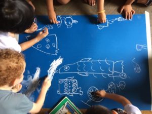 Presso il Centro Gioco Natura e Creatività di Educazione Ambientale la Lucertola di Ravenna, il laboratorio Boccheggiar come pesci ha visto bambini e genitori costruire Naccare sonore con le bottiglie di plastica, tappi, elastici e colori a forma di pesce dopo aver navigato nelle immagini di alcuni albi illustrati, enciclopedie e foto dell’ambiente marino.